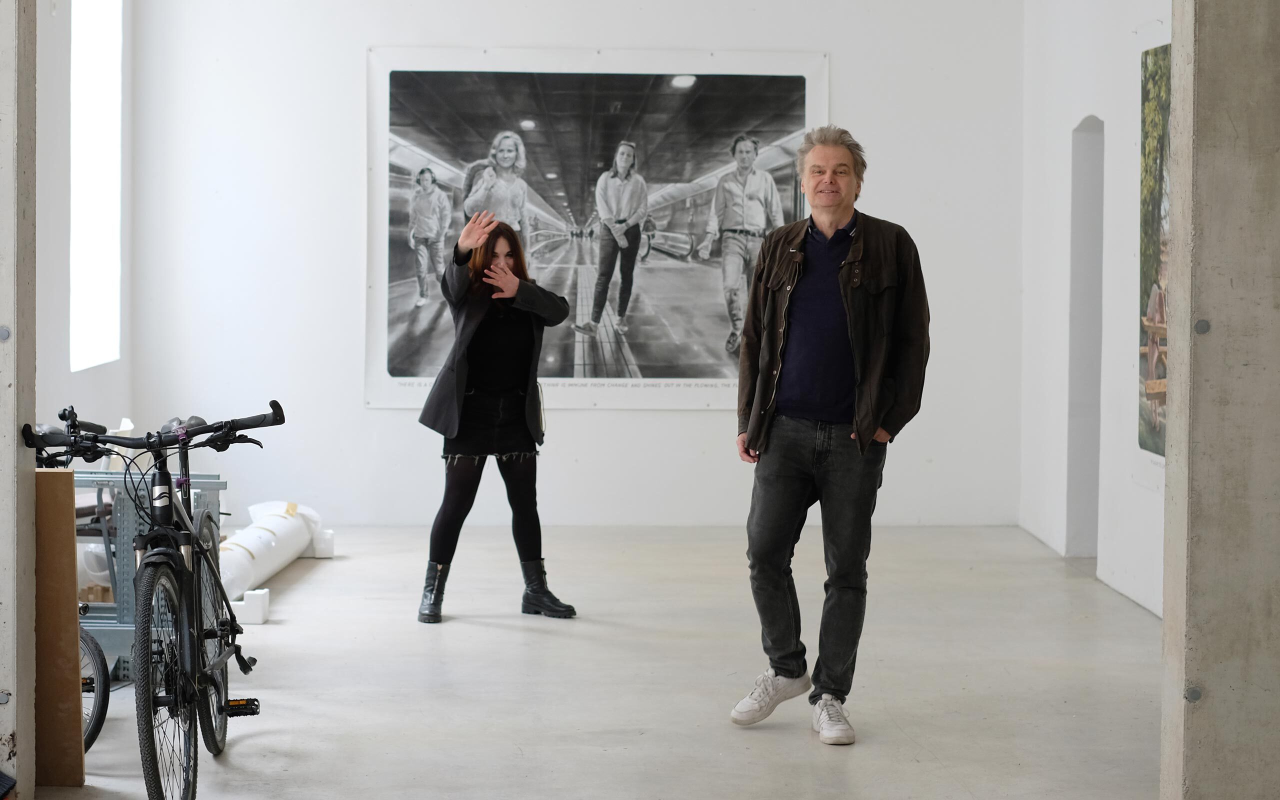 M: Wir haben uns ein Atelier geteilt, und es gab diese Periode des Nebeneinander-Arbeitens, wo jeder für sich Werke produziert hat. Aber dann ist es organisch langsam zusammengewachsen, sodass man eingegriffen hat in die Arbeit des anderen oder dass es zu Überschneidungen kam. Es ist ein Glücksfall, auch wenn es Diskussionen im Vorfeld in der Bildfindung gab, aber sonst gab es nie ein Fragezeichen. Und dadurch war es überhaupt erst möglich, diese Zusammenarbeit zu beginnen.