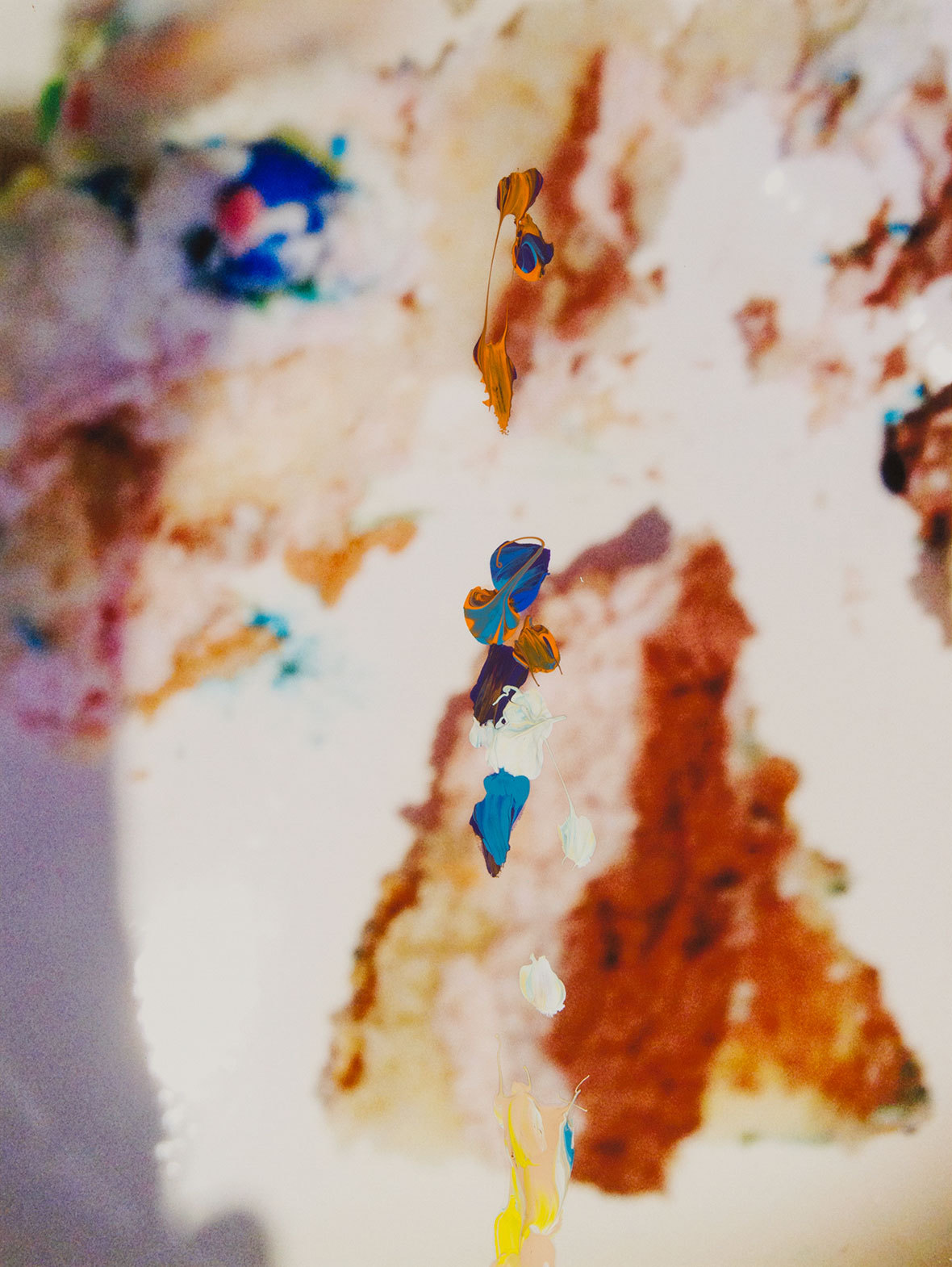 Lisa Holzer (1971 in Wien geboren) verwendet gerahmte Fotodrucke, um spielerische Kompositionen aus Bild, Text und Materie zu schaffen. Ihre Motive gehen oft von Essen aus, werden im Prozess jedoch immer gegenstandsloser und abstrakter, um schlussendlich eine malerische Qualität anzunehmen. Indem sie Bild und persönlich verfasste Textpassagen gegenüber stellt, schafft sie Bedeutungsräume und Beziehungsgeflechte, die nicht immer aufgeklärt werden. Zusätzlich appliziert die Künstlerin Materialien wie Klekse von Acrylfarbe oder Polyurethantropfen auf das Glas der gerahmten Arbeit, die sie selbst als Schweiß, Tränen oder als andere Absonderungen ihrer Werke erklärt. Lisa Holzer ist mit Begehren beschäftigt. Indem sie Beziehungen zwischen Essen, Verdauung, Emotionen und Körper herstellt, untersucht sie, was sich hinter den immer glanzvolleren und leicht-konsumierbaren Oberflächen von heute verbirgt.