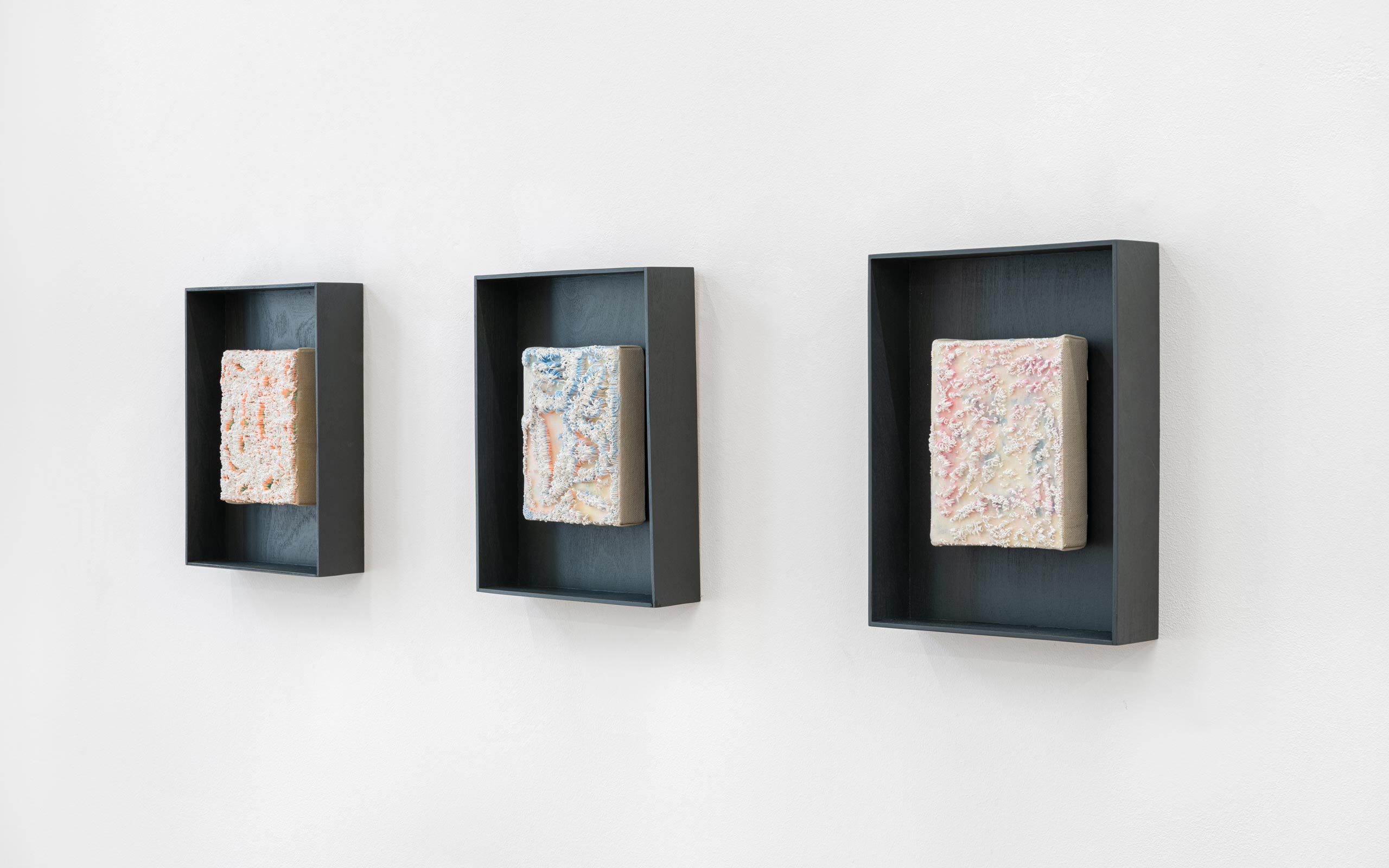 Die gezeigte Werkserie steht für Dejan Dukics derzeitiges Interesse an der Verwendung verschiedener Weißschattierungen in seinen Werken, wodurch insgesamt hellere und weichere Eindrücke entstehen.