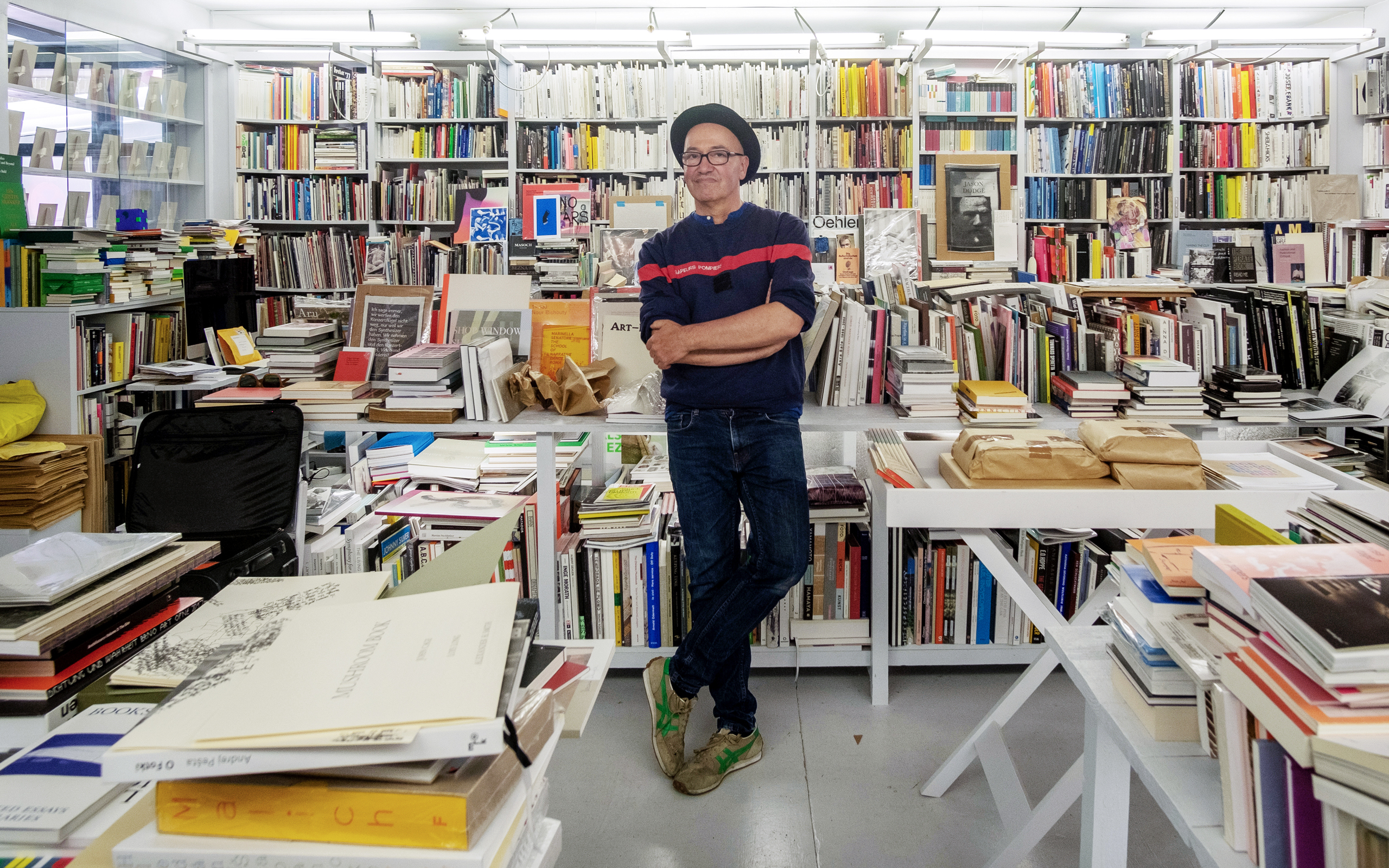 Bernhard, wir befinden uns in deinem Studio, wo Tausende Bücher in Regalen und auf Displays aufgestellt und auf Tischen gestapelt sind. Das lässt sofort an deinen Salon für Kunstbuch denken: Ein Projekt, für das du dein Künstleratelier in ein Modell einer Buchhandlung umgewandelt hast. Was steckte dahinter?