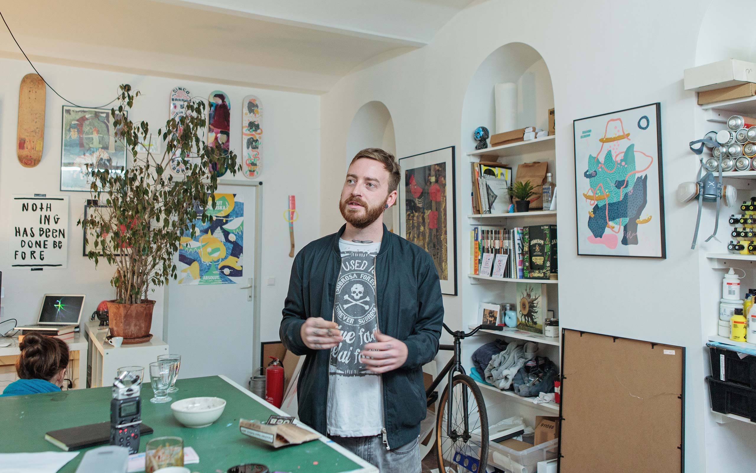 Das kam alles ziemlich spät. Ich habe zwar schon immer gerne gezeichnet. Doch irgendwann kamen eben dann andere, wichtigere Sachen. Die erste Freundin, skaten, und ich habe das Zeichnen aus den Augen verloren. Dann absolvierte ich eine Ausbildung zum Elektrotechniker. Das war meinen Eltern wichtig. Nach der Matura bin ich nach Wien und wollte was machen, was nichts mit Technik zu tun hat, und habe begonnen Psychologie zu studieren. Nebenbei habe ich dann vier Jahre in einem Call-Center gearbeitet. Für den Moment hat das gepasst.