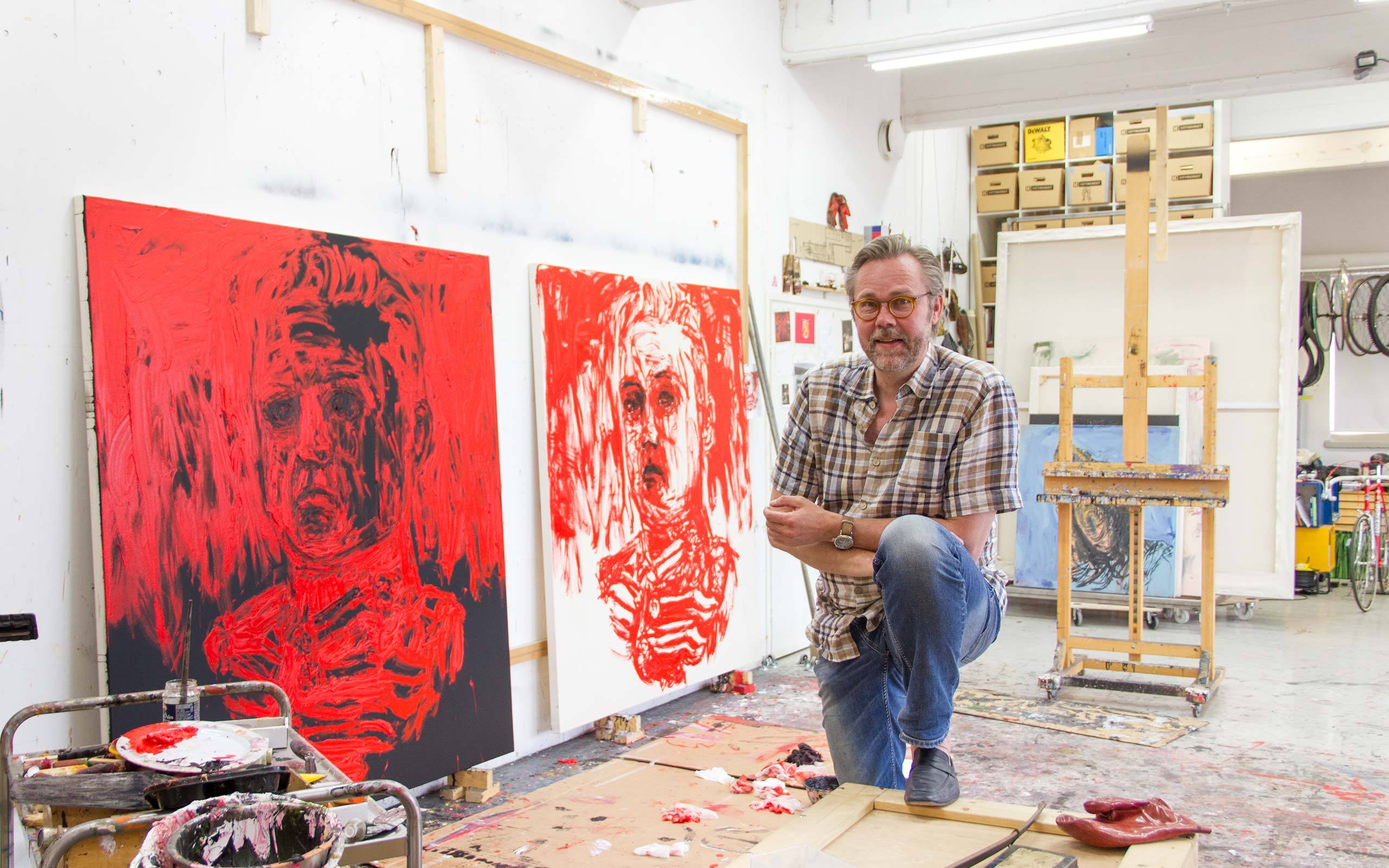 Seit mehr als zwanzig Jahren hat Heikki Marila in seiner Arbeit ein weitgefächertes Spektrum von Themen – von biblischen Motiven, Selbstportraits, wackligen vertikalen Linien, Blumenbildern in Anlehnung an die niederländische Stillebenmalerei des 16. und 17. Jahrhunderts bis zu Stadtplanansichten – bearbeitet. Seine Arbeit bezieht Inspiration aus der Kunstgeschichte, in seinen neueren Gemälden aber auch aus dem lutheranischen Protestantismus. Seine Gemälde haben etwas extrem Körperliches, das oft einen übertriebenen Sinn für Drama, aber auch Ironie ausstrahlt. Üppige Farbschichten kaschieren starke soziale Botschaften und Gefühle. Wir saßen mit Heikki in seinem Atelier in Turku, im Südwesten Finnlands, zusammen und unterhielten uns mit ihm unter anderem auch über seinen bedeutendsten Gemäldezyklus, die Blumengemälde und seinen künstlerischen Beitrag zur Hundertjahrfeier Finnlands.