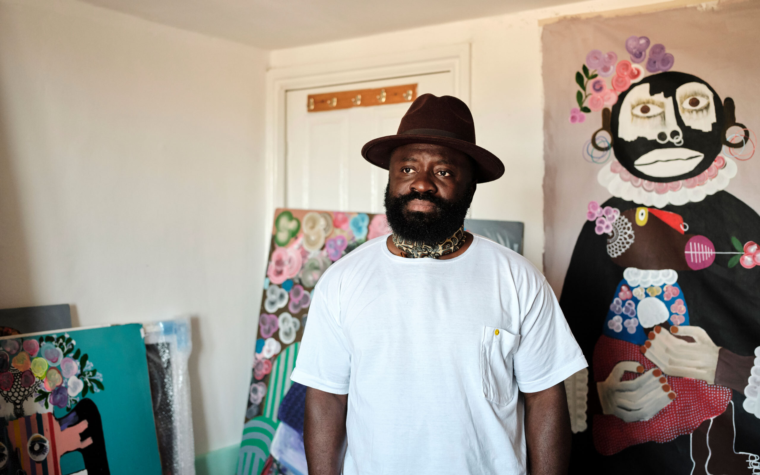 Meine Erfahrungen mit verschiedenen Kulturen sind das Werkzeug, mit dem ich male – sie ermöglichen es mir, die Gemeinsamkeiten der Menschheit anzusprechen. Ich fühle mich privilegiert, in Ghana, New York und London gelebt zu haben – ich habe verschiedene Perspektiven kennengelernt, die ich immer wieder vergleiche und in meiner Arbeit kombiniere. Wenn ich zwischenmenschliche Interaktionen beobachte oder sehe, wie Menschen mich behandeln, überlege ich oft, wie sich die gleiche Situation woanders ganz anders abgespielt haben könnte. Ich möchte, dass meine Bilder die Menschen dazu bringen, innezuhalten und ihre Aufmerksamkeit auf Dinge zu richten, die sie im Alltag vielleicht übersehen – es ist sehr schwierig, Dinge nicht zu sehen oder zu hören.