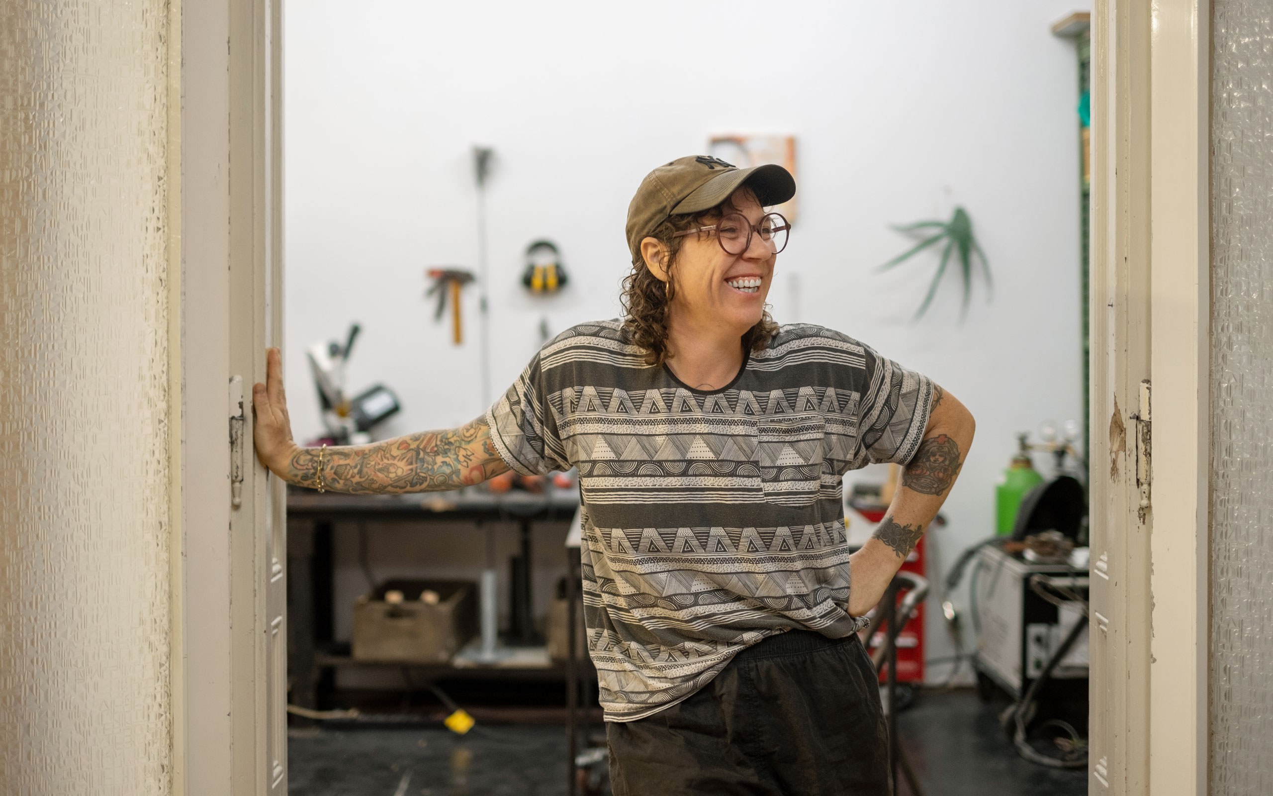 Ich liebe Leder. Weil es auch lebt und man es pflegen muss. Wenn ich es feucht mache und über eine Form ziehe, behält es diese Form. Es ist ein interessantes, weil viel widerspenstigeres Material, so eine große Lederhaut hat etwas von einem Stahlblech. Leder vernähe ich und ziehe es über Metallteile.