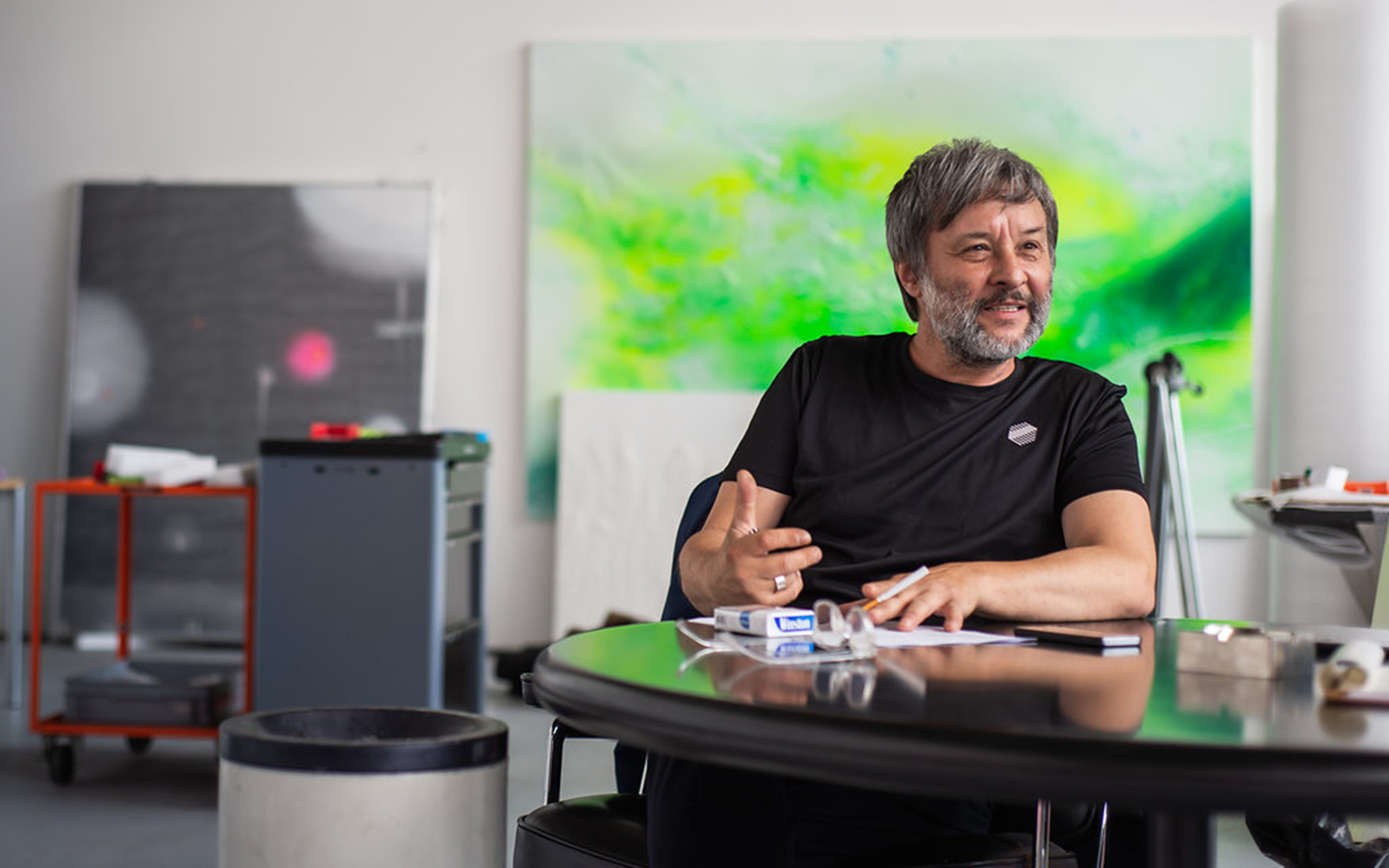 Mein Atelier kann man auch als einen Umschlagplatz für Ideen und Waren sehen, es ist der Ort, wo ich versuche, einem gewöhnlichen Material einen gewissen Zauber einzuhauchen. Das Atelier ist meine Welt und gibt mir alle Freiheiten, die ich brauche. Es ist das Theater, das ich selbst kreiert habe: Hier bin ich Hauptdarsteller, Regisseur und Zuschauer in Personalunion. Genau das erlaubt es mir, meine Regeln zu bestimmen und ihnen zu folgen, meine Zeit bedeutungsvoll zu gestalten, mich mit mir selbst auseinanderzusetzen. Wichtig sind mir vor allem das Licht, die Größe, die Stille und die Akustik. Ich brauche Platz und durchdachte Logistik. Ich möchte mich nicht einschränken lassen, weil mein Bild größer als der Ausgang ist. Da ich mit einer breiten Palette an Kunstmedien arbeite, muss der Raum vielen Wünschen genügen.