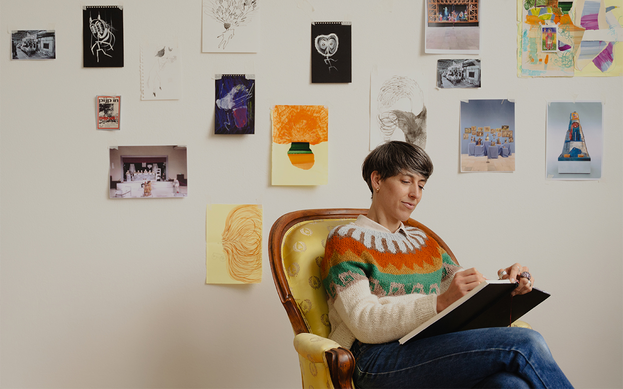 Die argentinische Künstlerin Mercedes Azpilicueta denkt nicht in geraden Linien. Ihre Arbeit dreht sich um überlieferte Geschichten, feministische Theorie, Kolonialgeschichte und die Dinge aus ihrem Alltag. In Installationen aus Textilien, Klang, Zeichnung und Performance dekonstruiert sie gängige Erzählungen, um alternative Formen des Wissens sichtbar zu machen. Oft fängt sie mit einer Zeichnung an, und ihr Prozess entwickelt sich langsam, geprägt von Recherche, Improvisation und langjährigen Kooperationen. Das Ergebnis ist eine unruhige Polyphonie, in der die Stimmen verstummter Dichter, Mystiker und Reisender nicht zu einer einzigen Geschichte verschmelzen, sondern eine andere Art des Erinnerns suggerieren: offen, lebendig, widersprüchlich und ungelöst.