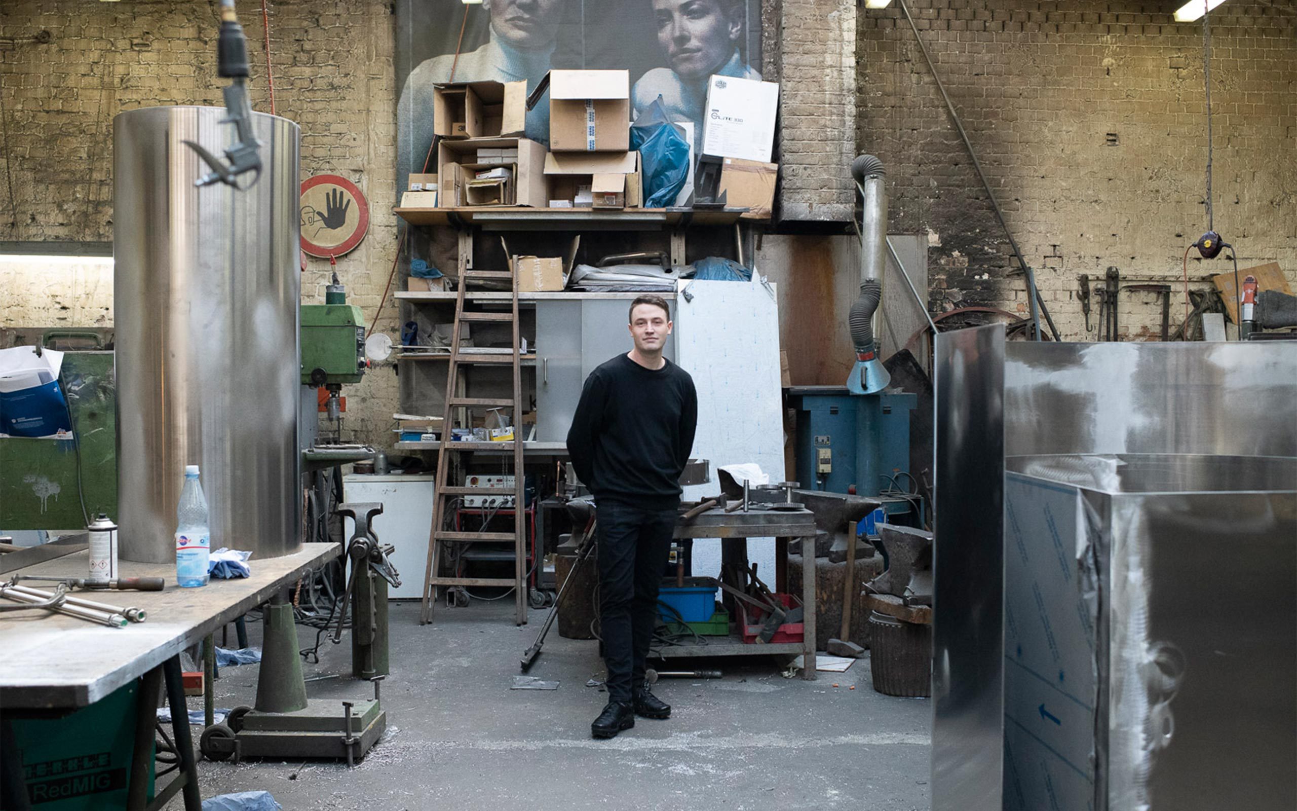 Jede Arbeit ist das Resultat aus der vorhergehenden, und so vertiefe ich mich automatisch in gewisse Materialien, die so viel Faszination für mich haben wie Stahl, Edelstahl und Aluminium sowie die daraus vorgefertigten Teile. Mich interessiert daran, dass sie eben Industriematerialien sind und dadurch schon gewisse Formen vorgeben. Es gibt zum Beispiel Aluminiumbleche nur in drei Metern Größe. Man kann natürlich größer denken, dann muss man aber eben schweißen. Das ist ein bisschen wie ein Steckkastensystem.