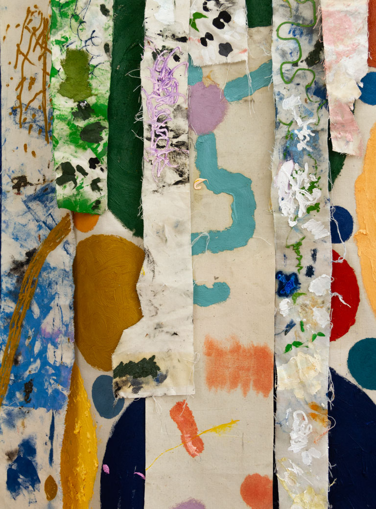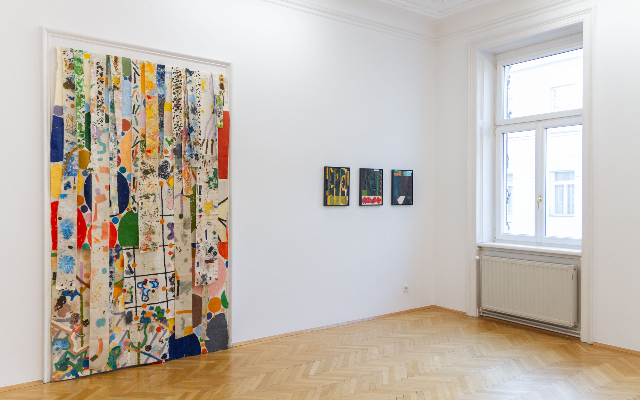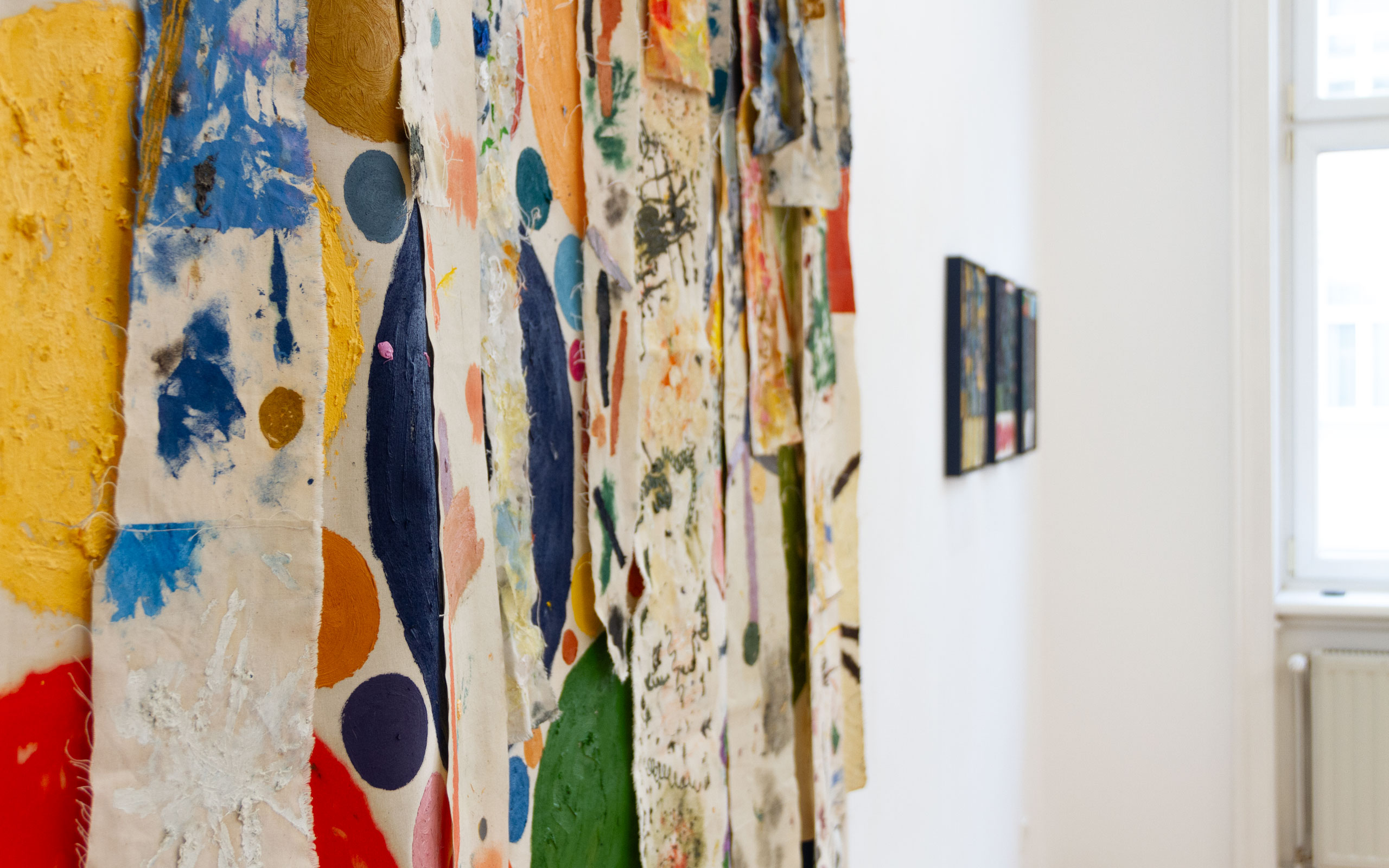 Alongside this edition, the exhibition also presents large-format canvases and a fabric installation that expands the spatial experience of the show. Together they form an ensemble that makes Freund’s engagement with materiality, time, and transience tangible across different media registers.