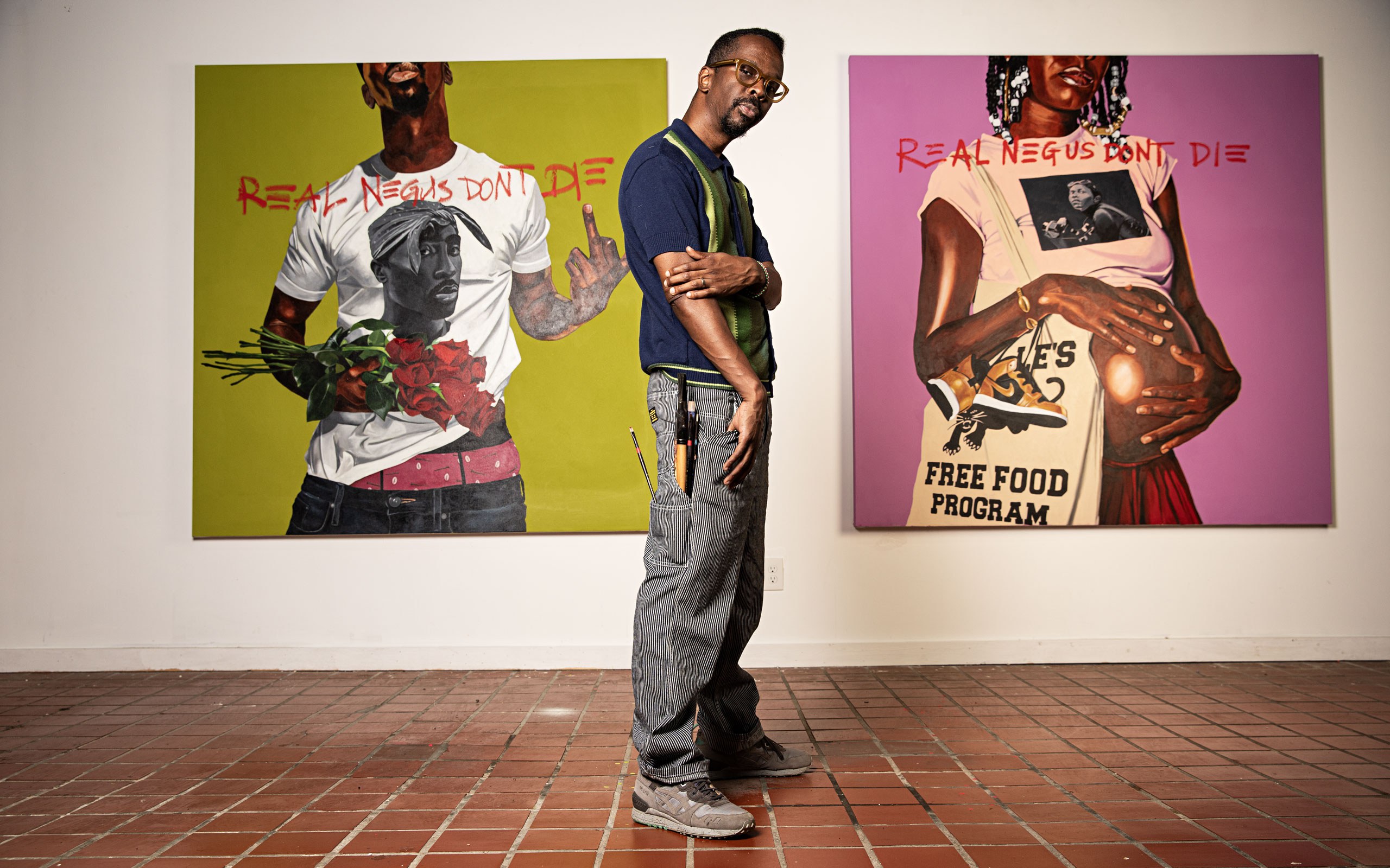 Dr. Fahamu Pecou is an American artist and scholar working in painting and performance, drawing from his observations on hip-hop, popular culture and fine arts. His artistic and academic work deals with the contemporary representation of Black masculinity, and how the stereotypes created by images relating to Black men shape and impact our understanding. He is the founding director of the African Diaspora Art Museum of Atlanta (ADAMA) and holds the title of a French Chevalier de l’Ordre des Arts et des Lettres.