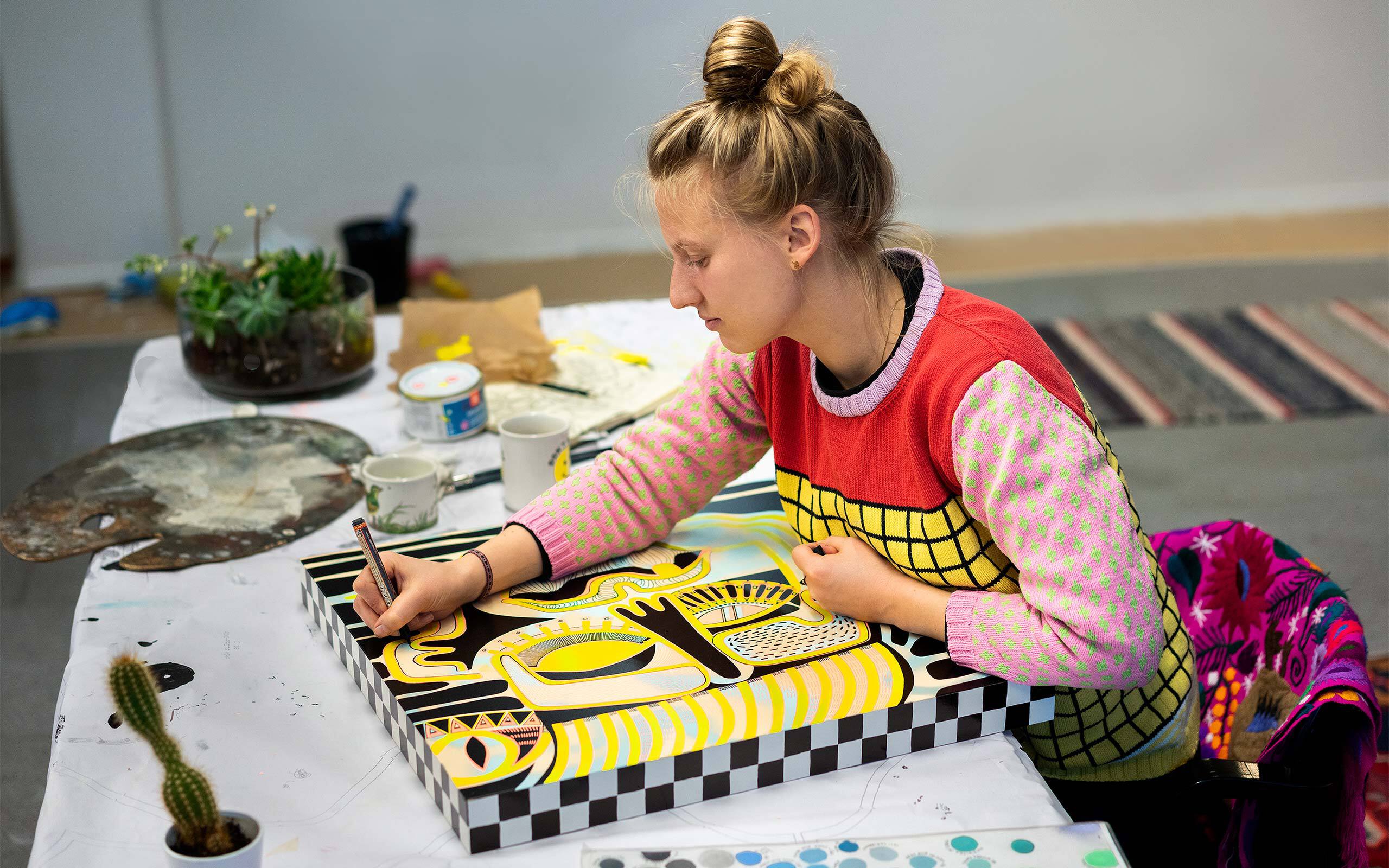 I love colors! I express through joy. But it does not restrict me from working with difficult subjects. People are attracted to colors and it’s a way of opening up a discussion. The colors create a connection between a person and the artwork. Once you take a closer look, maybe it'll raise questions. When the work starts speaking to you, or illuminates a thought in your head – that’s what I value in art.