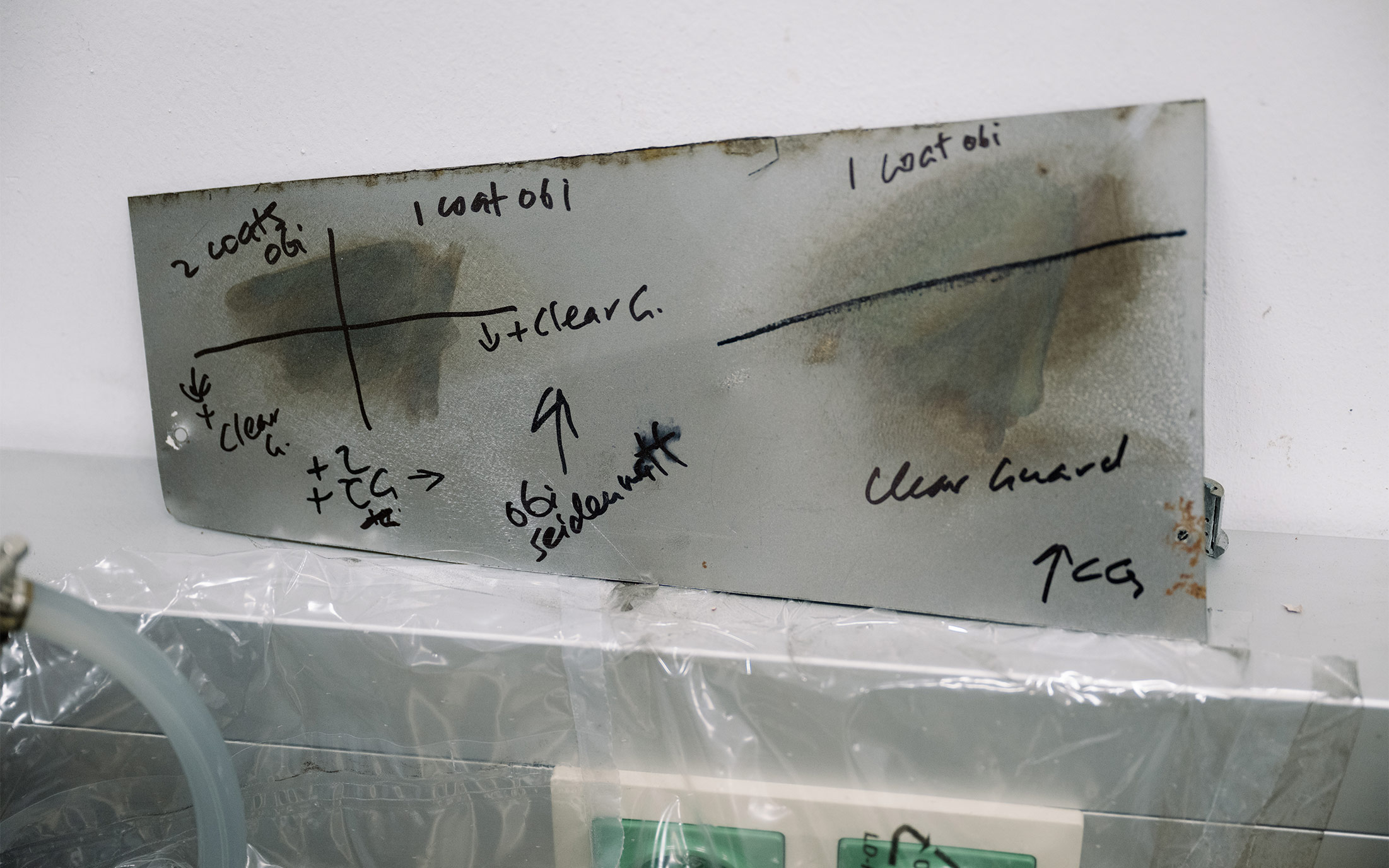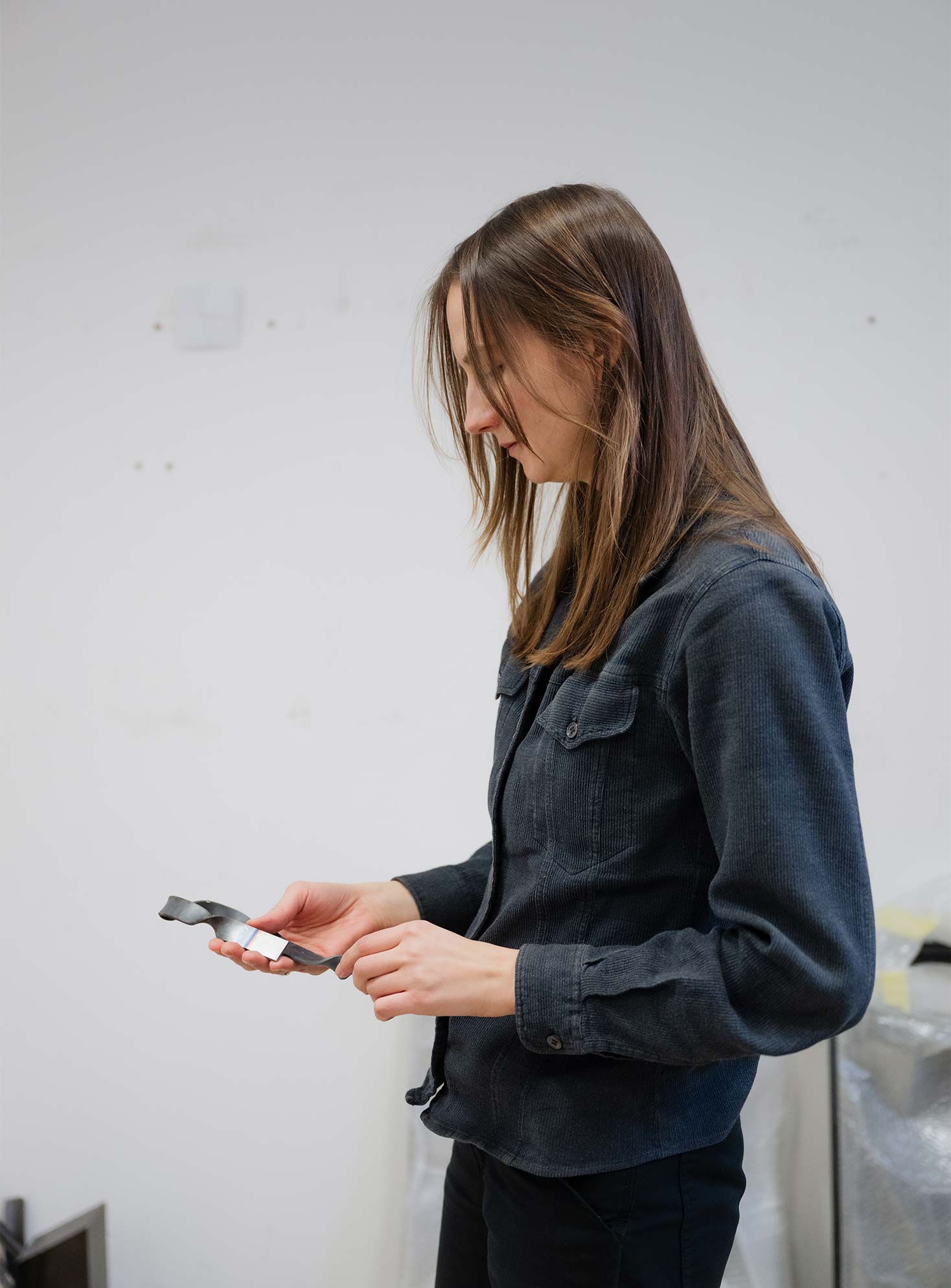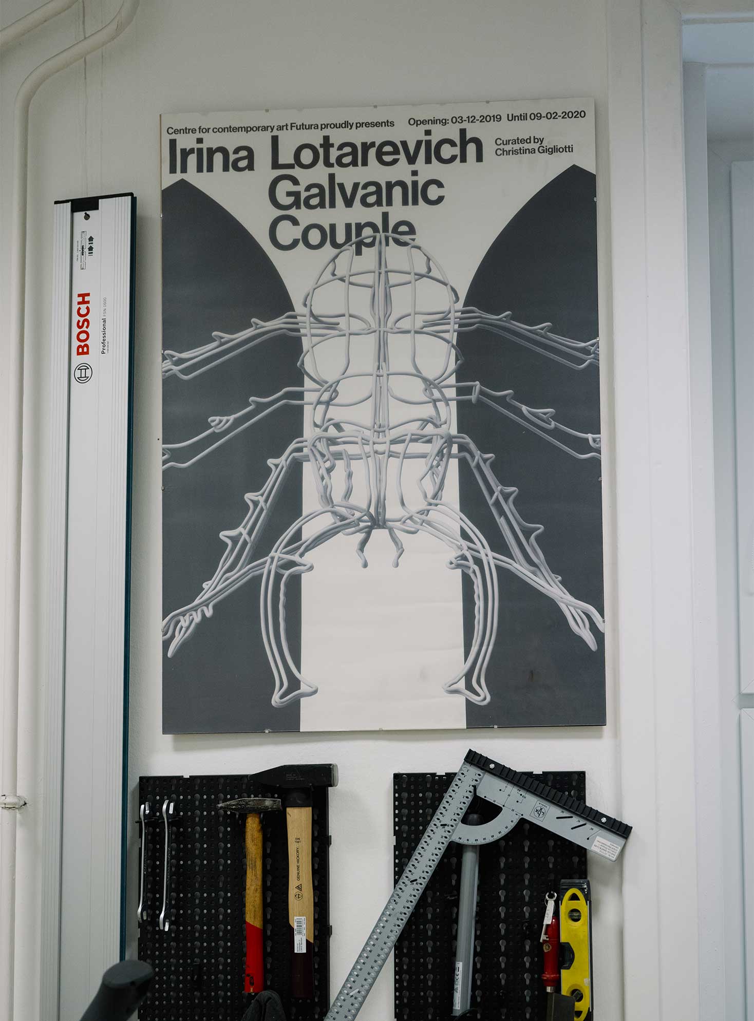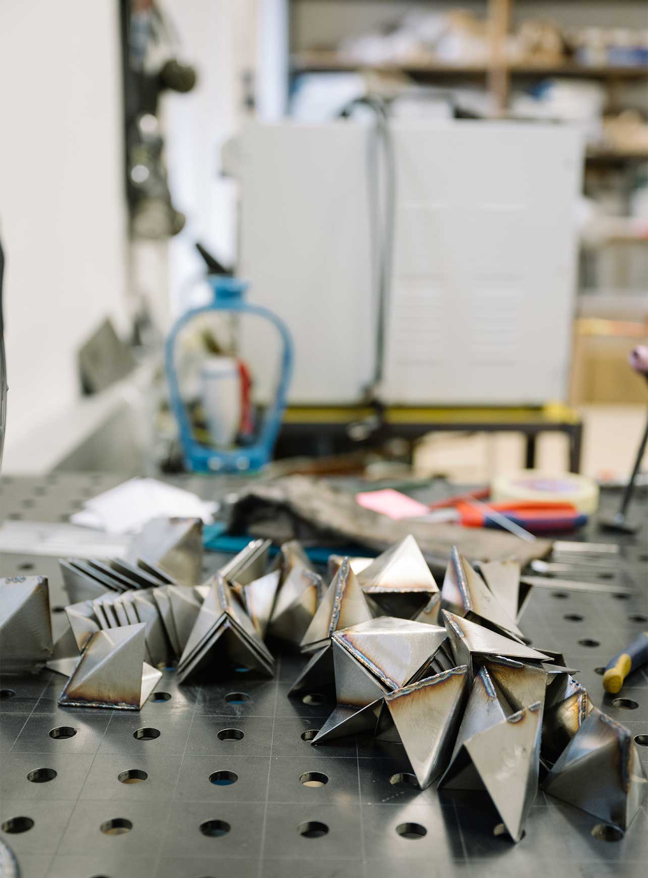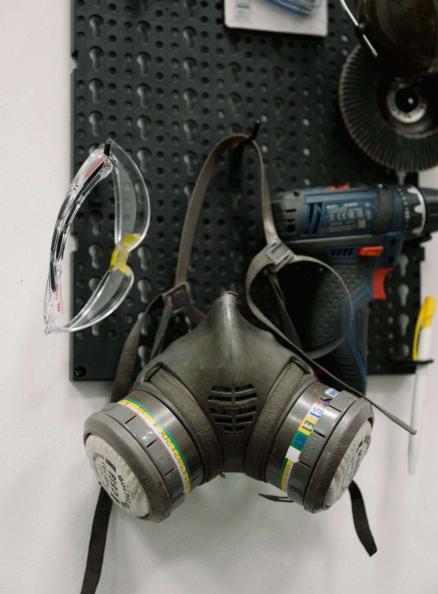 So, I split my time between working at the University of Applied Arts, where I teach in the metal workshop of the Sculpture and Space Department, spending the rest of my time in the studio. When I’m here, I really like to be in this kind of physical work mode, because I use my body a lot. Most of it is made by hand, and it takes a huge amount of time and labor. I really hate being on the computer and answering emails, so I try to avoid that as much as possible. I usually do it very early in the morning, just to get it out of the way. Then I come here, and I’m usually cutting something or sanding. I might be sanding for hours, or welding something — these are processes that just take a long time. Sometimes it’s three days in a row of sanding, for eight hours a day. So, it’s mostly a lot of physical labor, and not so much sitting around and thinking. Although I do think I probably need a bit more space to just sit and think sometimes. But for the most part, it’s very much a “production mode”. (laughs)