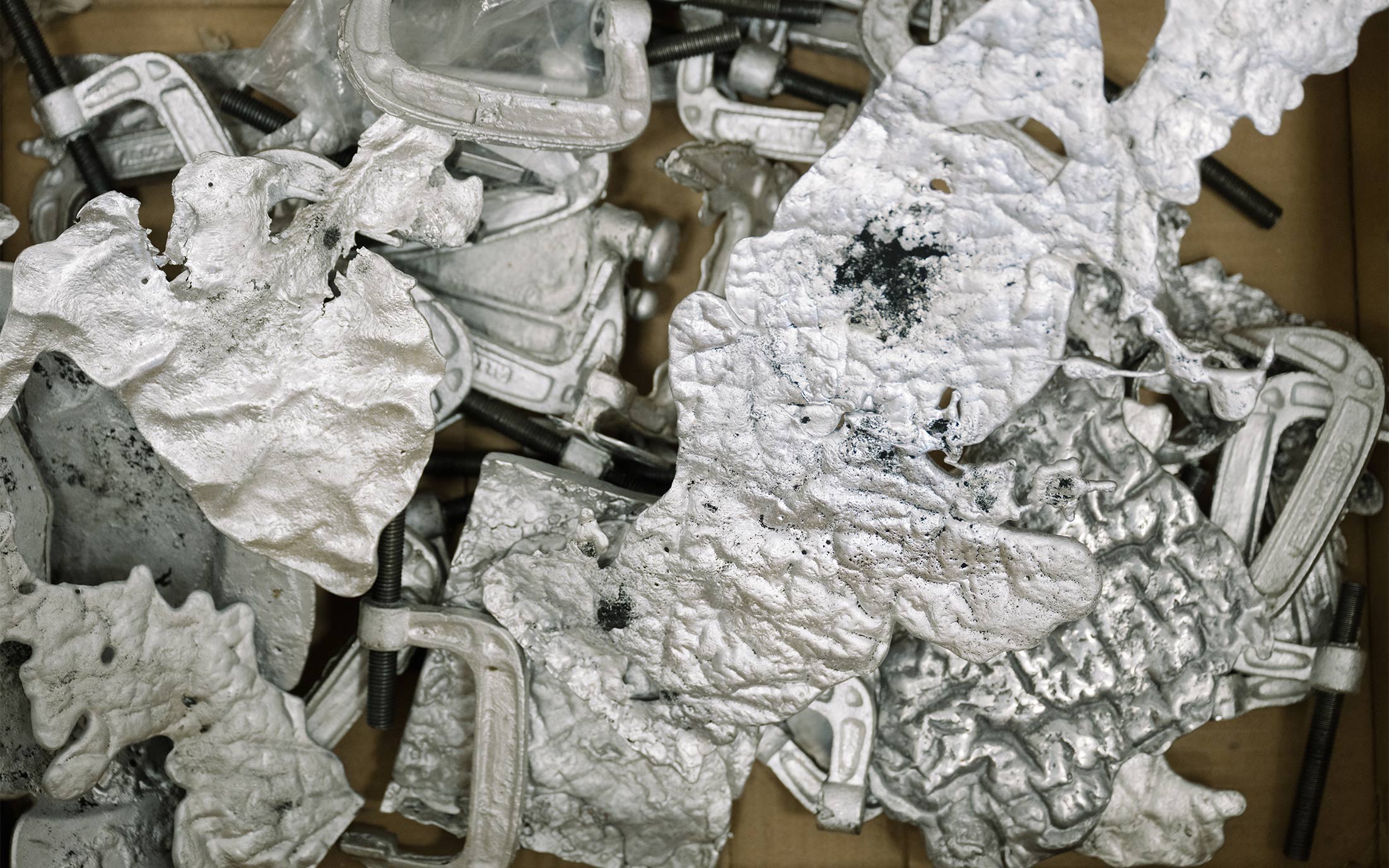 I really love metal. For a few years now I’ve been working almost exclusively with this material. Before that, I used to make sculpture out of all kinds of different materials — especially when I didn’t really know yet how to work with tools, or how to use my hands in that way. I was doing a lot of found object sculpture, or plaster casting — just very simple, accessible materials. But once I really got into metalworking, I kind of fell in love with it. I think people often stereotype metal as something that’s very hard and industrial, and kind of inaccessible. But I actually find it really flexible, once you know how to work with it, you can do so many different things. And I also like getting more skilled at it and being able to control it more. It feels like I could spend my whole life pushing into this material, and there would still always be something new to learn.