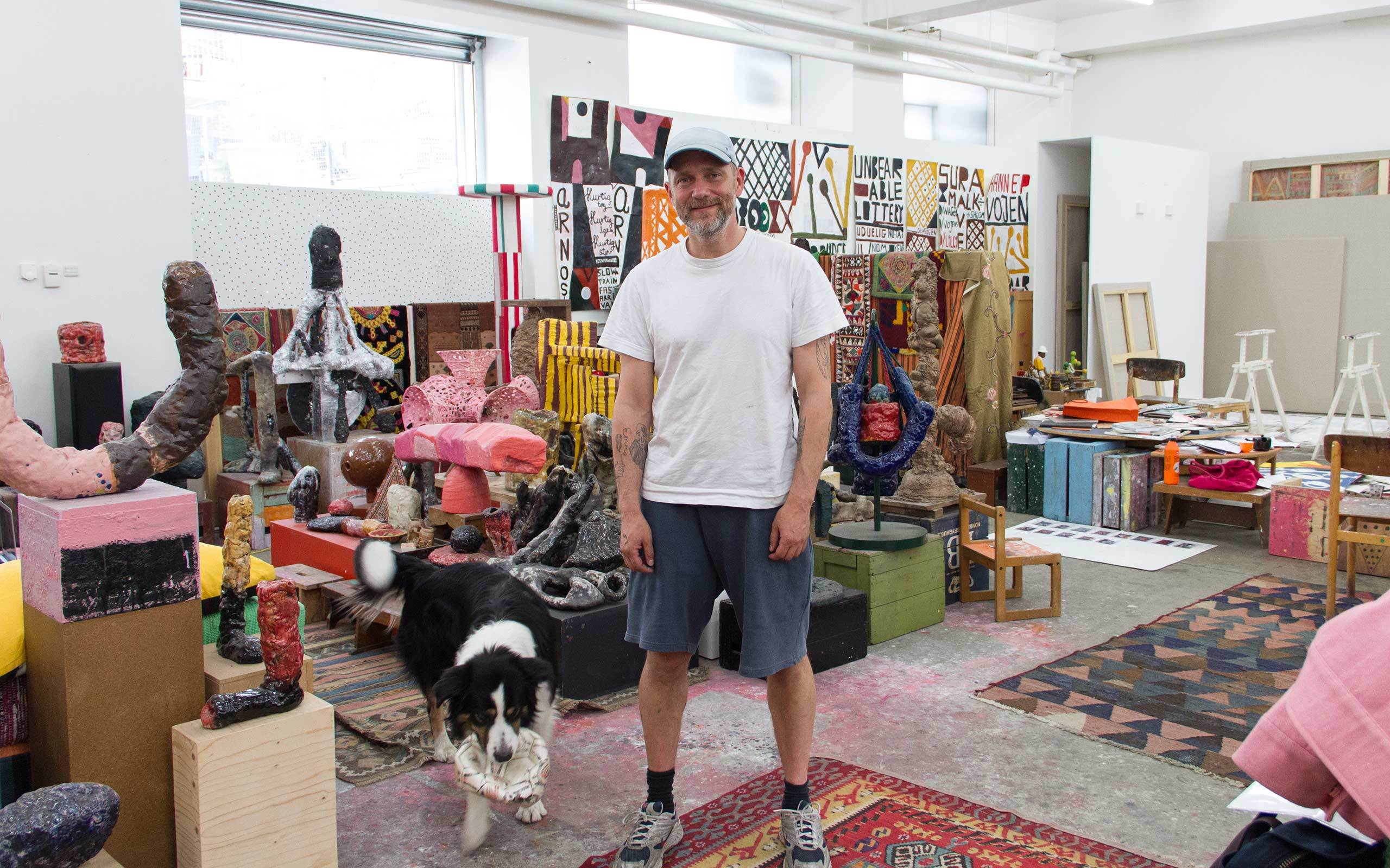 At first glance Tal R’s exuberant colorful paintings may give the false impression of being childishly simple. Looking closer, a subtle complexity emerges from his work. What appeared joyful and playful suddenly draws the viewer into a world of myths and darker themes. “It’s fucked up,” says the artist bluntly. We met Tal R in his Copenhagen studio Paradise, where he talks to us about topics like the beauty of failure, about his initial struggle to live out his artistic talent, and about what he wants viewers to take away from his work.