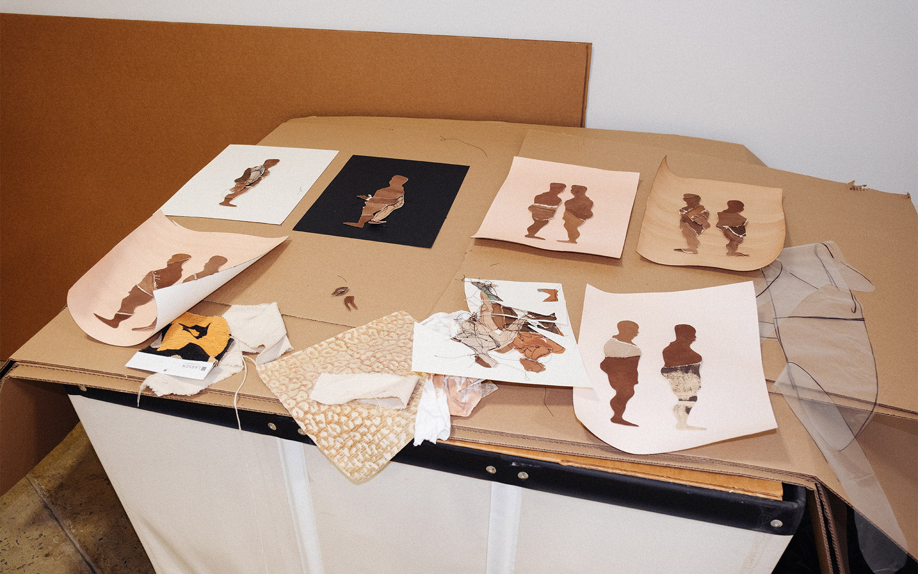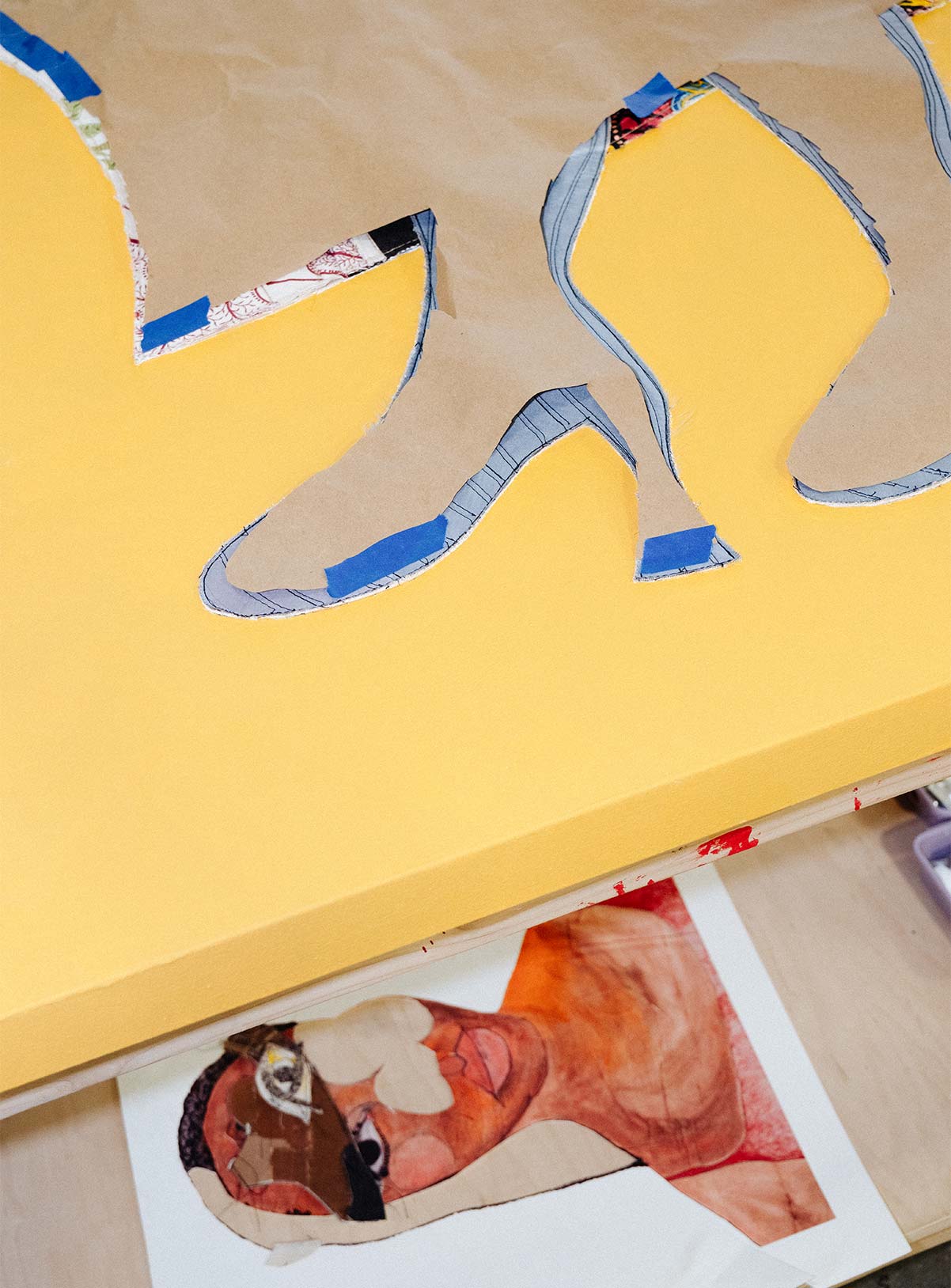 When I meet people for the first time, I usually say that I am a painter. They often follow up by asking what medium I work in, and I explain that I use a lot of fabric in my work — that’s what makes it unique. When they ask about the subject matter, I always say figuration. It feels like a good boilerplate, something that gives people a general understanding of what I do and what my interests are.