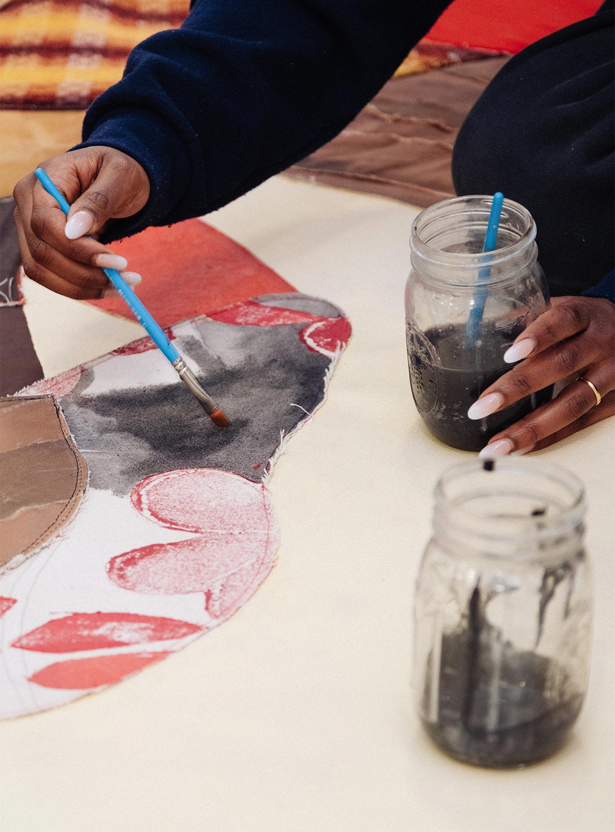 Your work spans painting, sewing, printmaking, and fabric. How does a piece come together from start to finish?